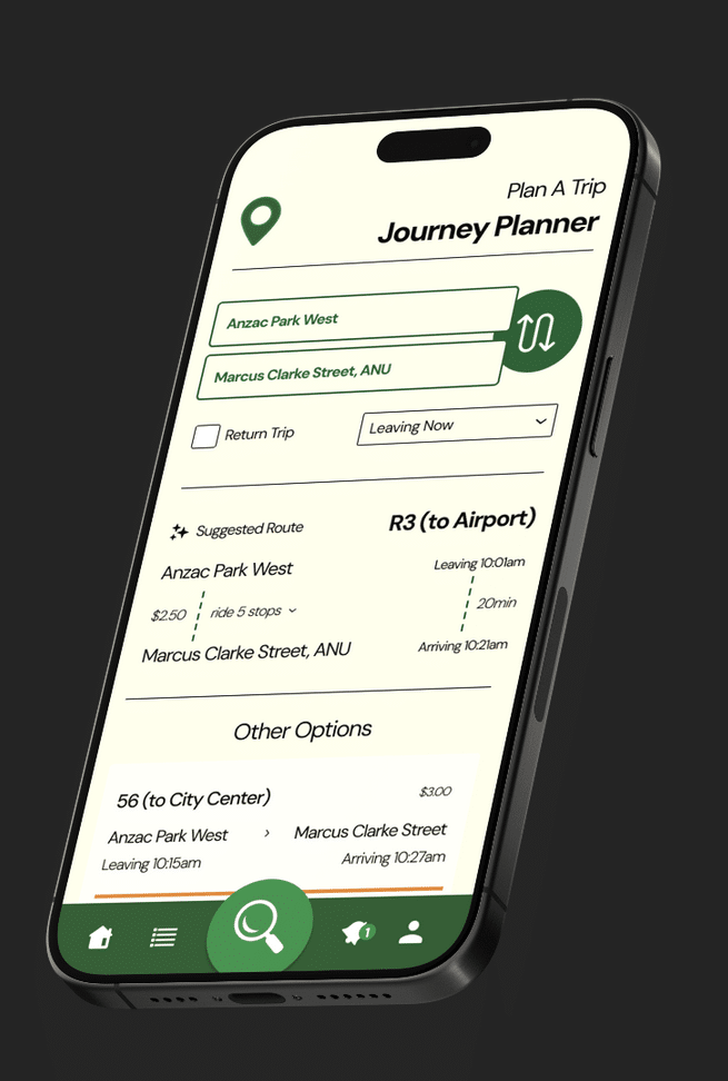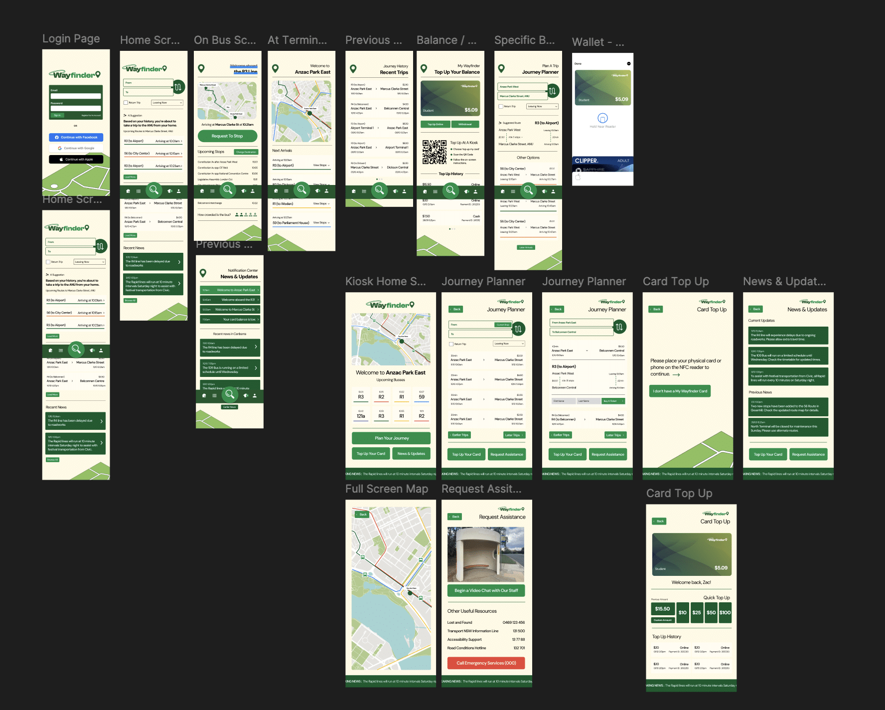 Developed with insights from low-fidelity prototypes, WayFinder emphasizes intuitive navigation and visual consistency, creating a cohesive system that simplifies public transit interactions. Built using Figma, the project reimagines Canberra’s existing MyWay infrastructure to offer a seamless, unique and contemporary transport solution.